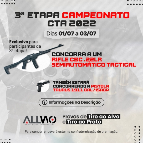 O Clube de Tiro Araranguá – CTA juntamente com a Loja ALLWO, vem convidar todos os atiradores, amigos e entusiastas do Tiro Esportivo para o